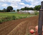 Implementos agrícolas, estufas, irrigação e trator
